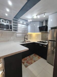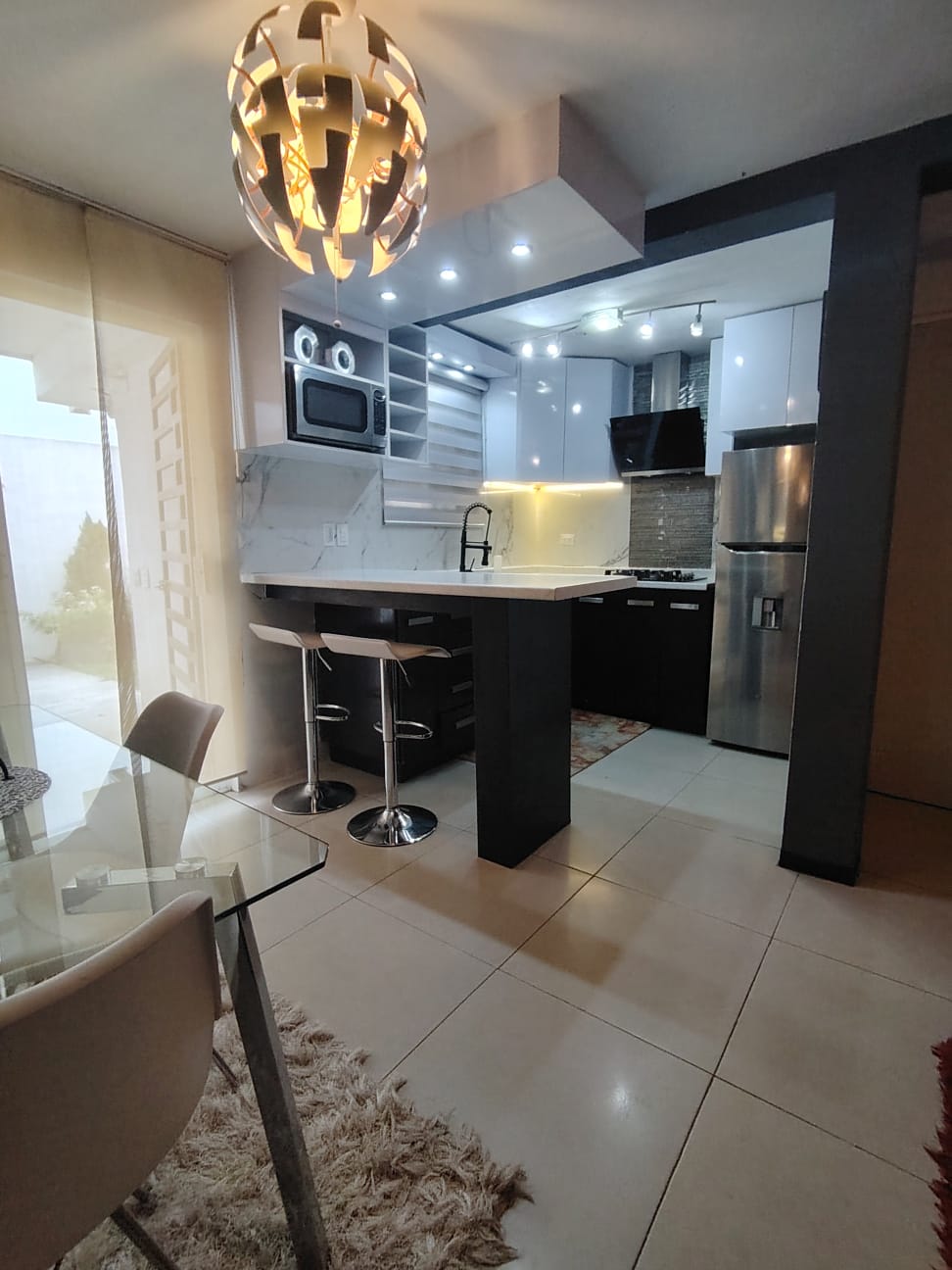 Cocina integral equipada con parrilla, refrigerador, horno de microondas
