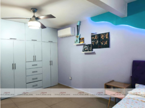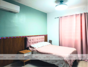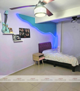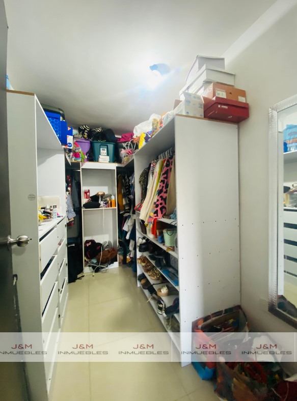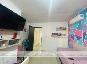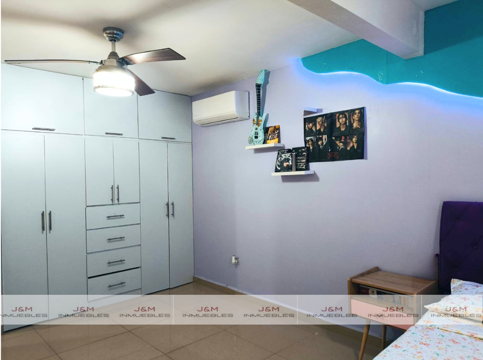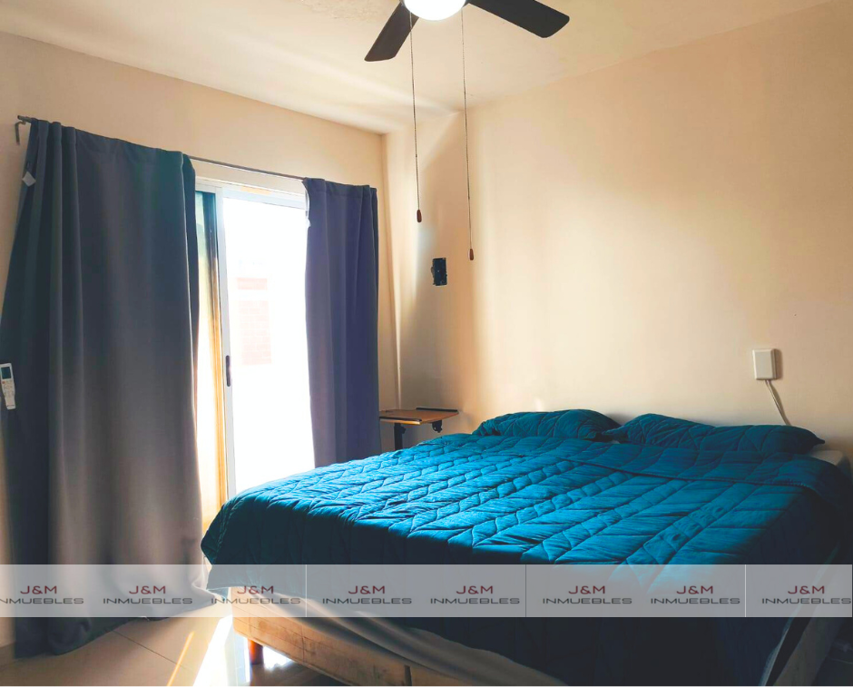 Recámara principal con baño, walk-in closet, balcón, abanico y minisplit.